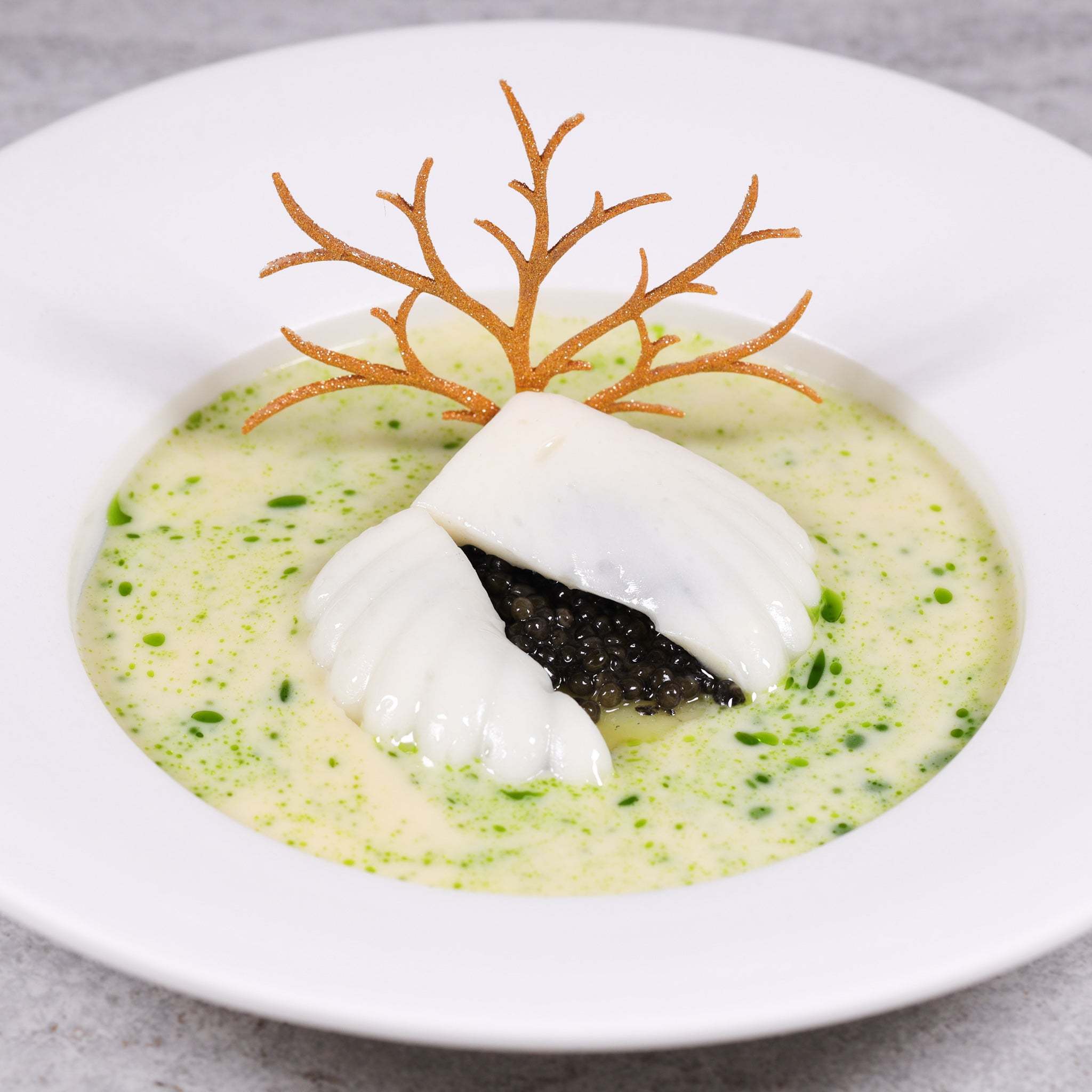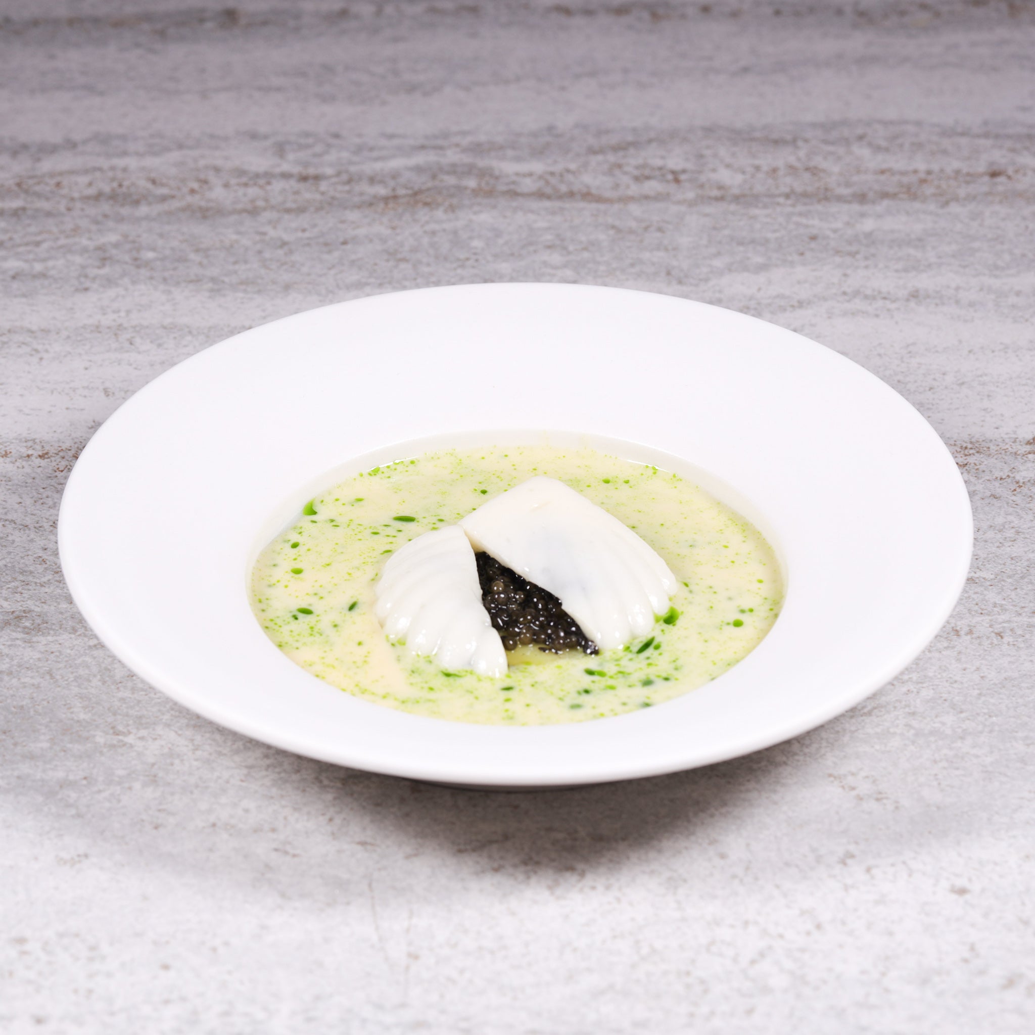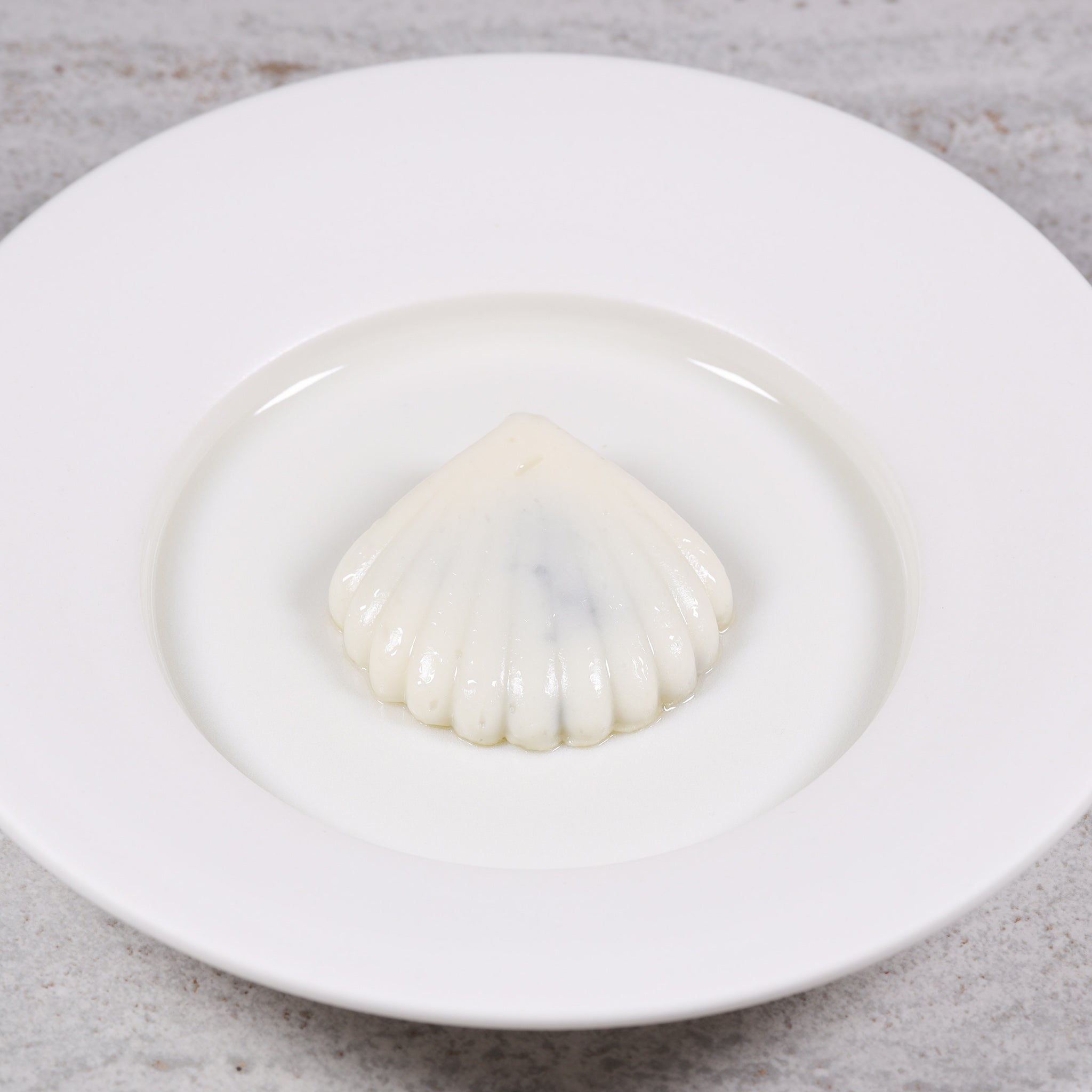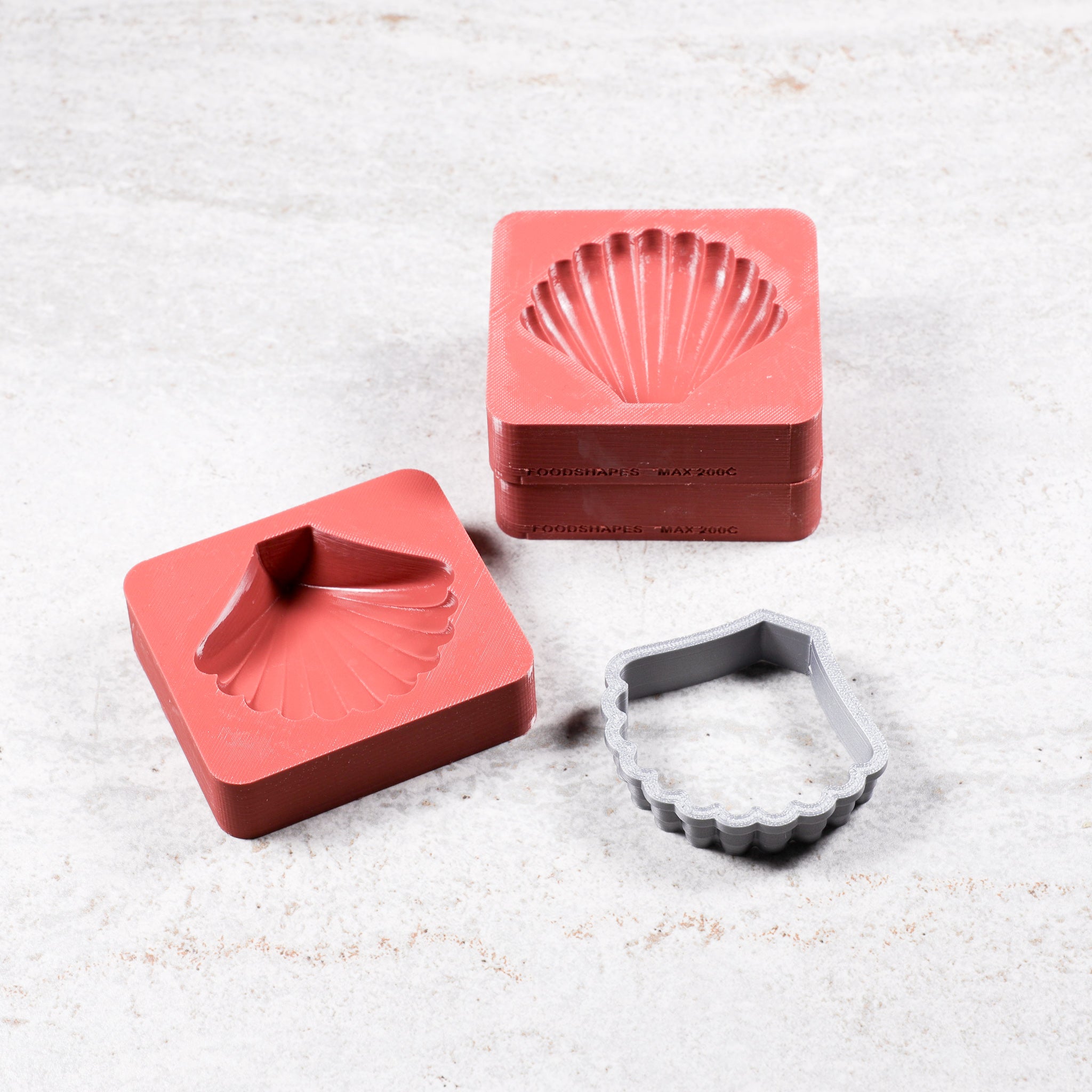 Scallop shell–inspired silicone mold designed for filled sweet and savoury preparations.